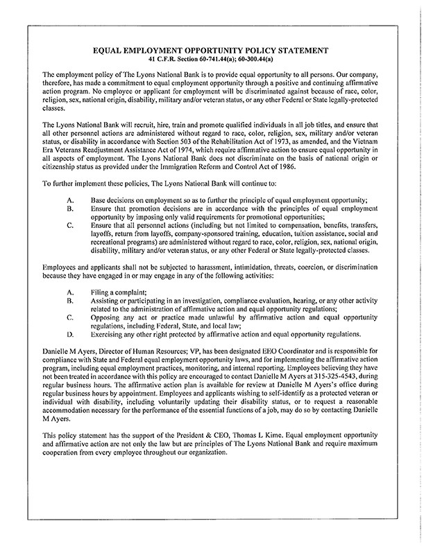 THE LYONS NATIONAL BANK IS AN AFFIRMATIVE ACTION/EQUAL OPPORTUNITY EMPLOYER.